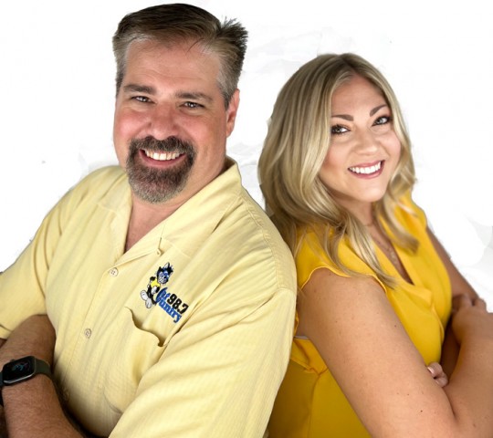 Pictured: Cat Country 98.7 morning show hosts Brent Lane and Mel McCrae. Courtesy photo for NorthEscambia.com, click to enlarge.