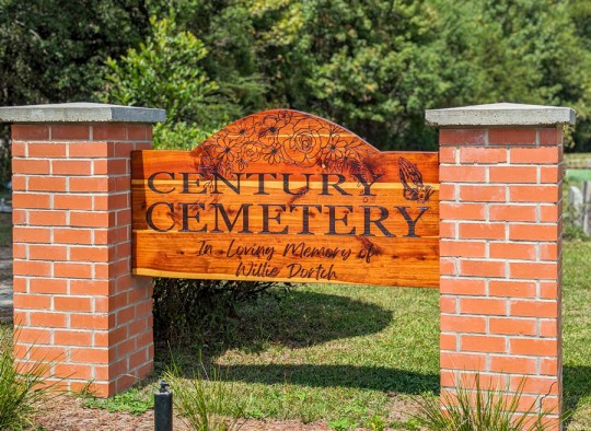 A sign at the Century Cemetery honor the life and work of Willie Dortch.