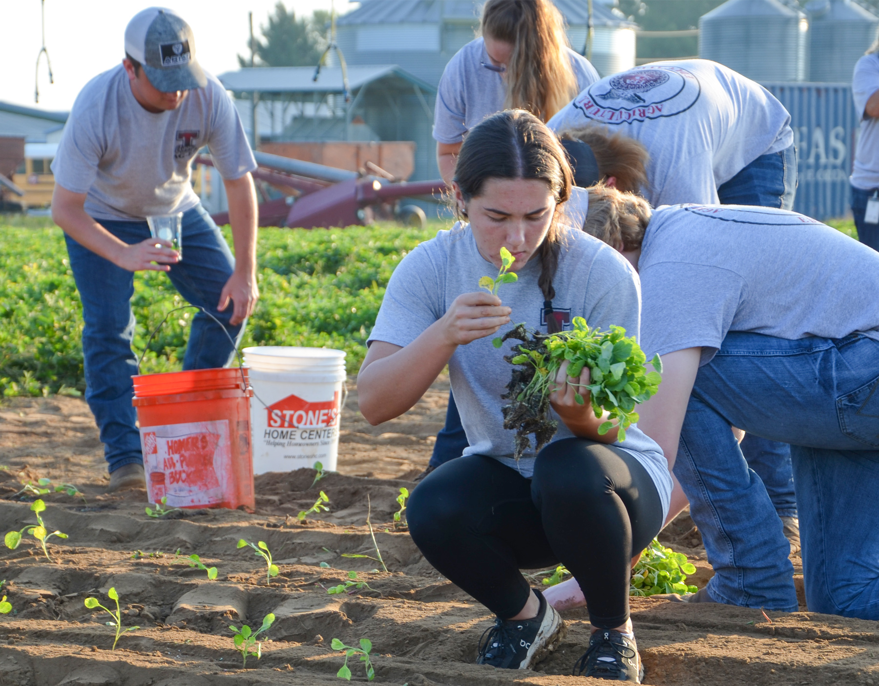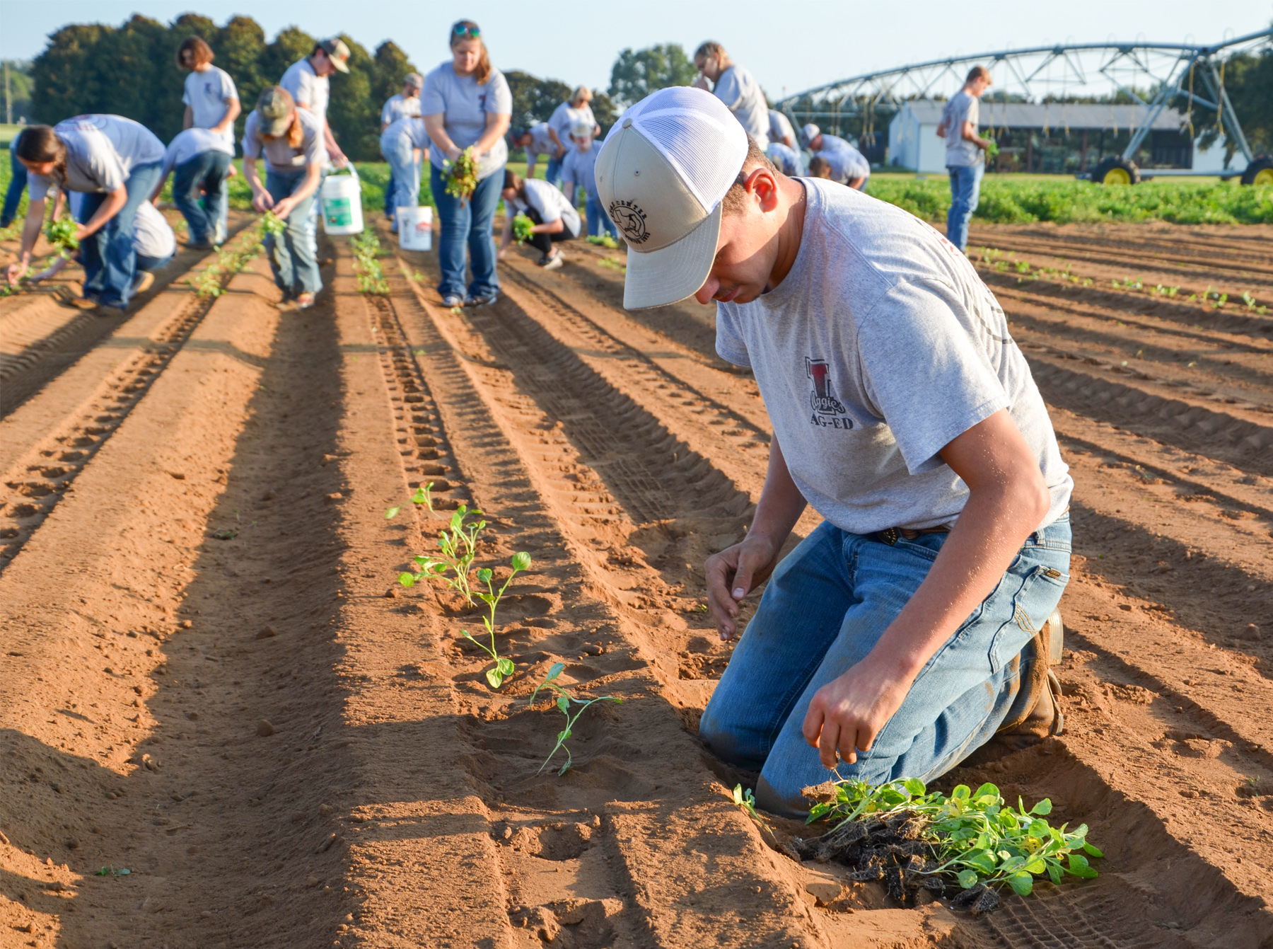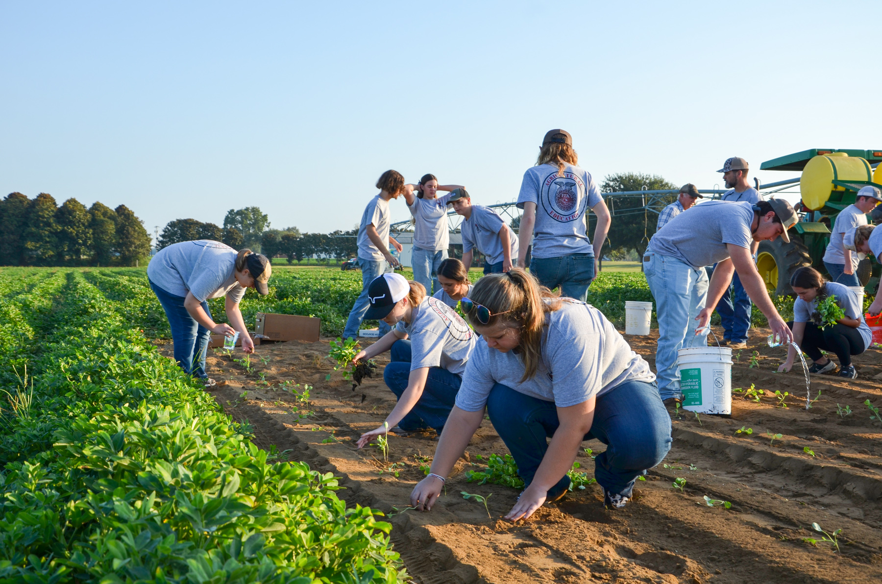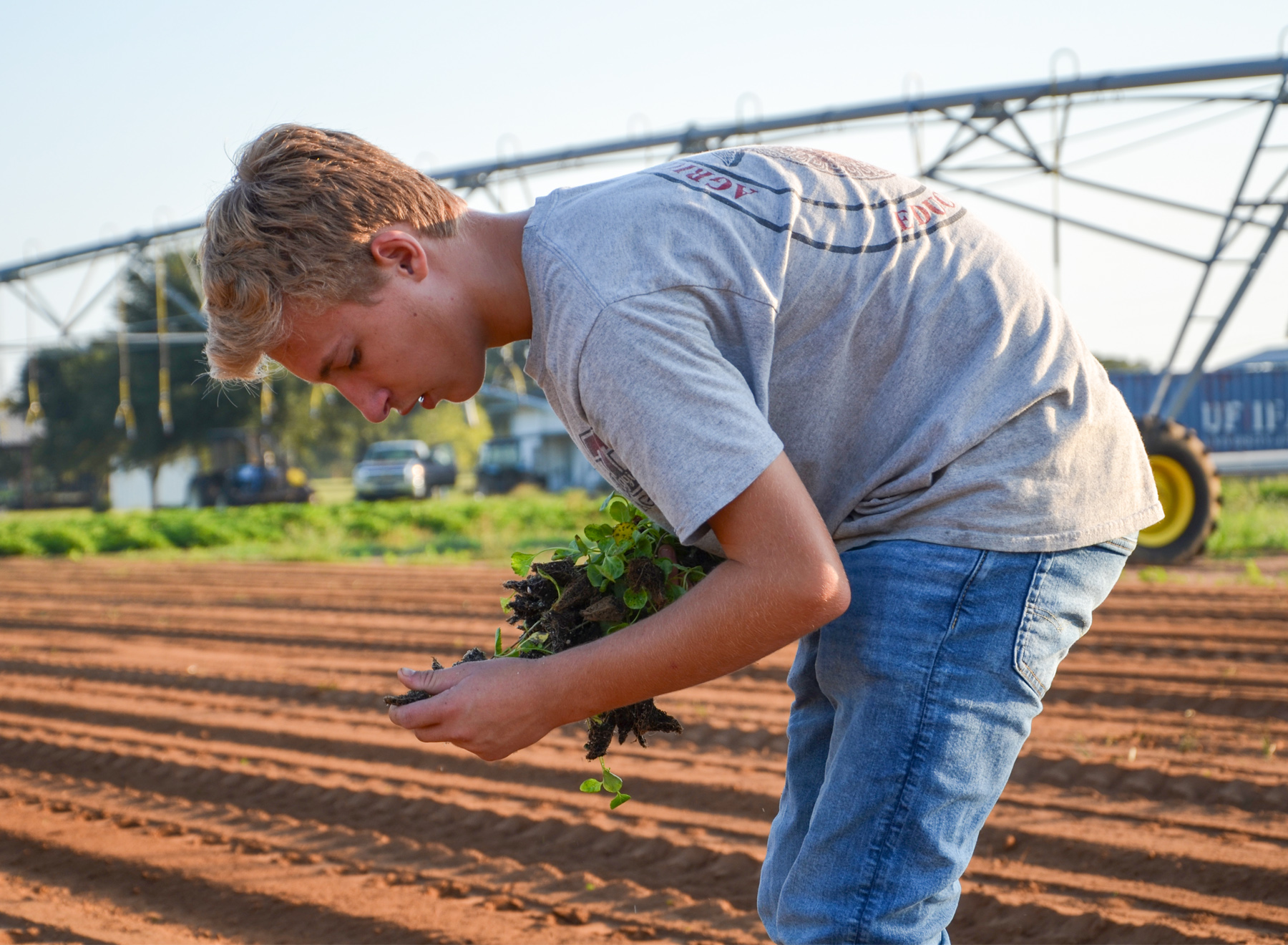 Tate High School FFA students worked tirelessly recently to transplant and water 2,600 collard plants at the UF/IFAS West Florida Research & Education Center.