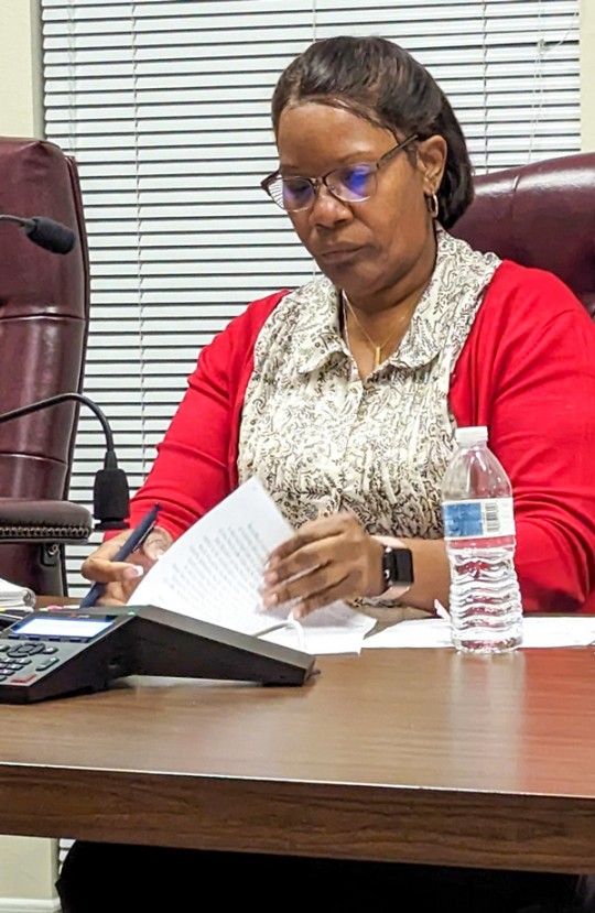 Council members Alicia Johnson and Dynette Lewis were the only members to attend in person. Shelisa Abraham joined the meeting remotely by phone as she was traveling. The town clerk said Henry Cunningham was absent due to a wedding in his immediate family, and she said Santa McMurray-Jackson had a “work emergency”. Interim mayor Luis Gomez, Jr., attended in-person.