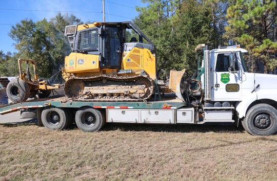 The Walnut Hill, Century and McDavid stations of Escambia County Fire Rescue and the Flomaton Fire Department were dispatched, along with the Florida Forest Service. The Forest Service used a bulldozer to place a containment line around the area.