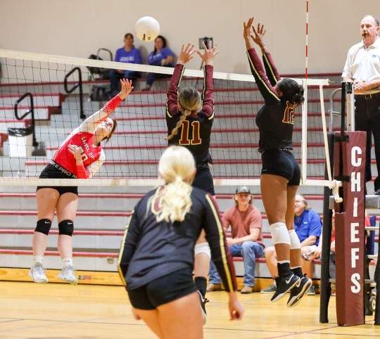 The Chiefs defeated Laurel Hill 25-16, 25-16, 25-23.