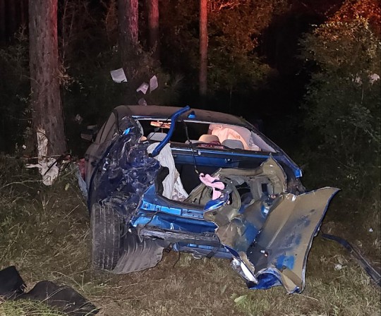The rollover wreck was reported about 2:35 a.m. on Highway 97 just south of Howell Road. The female driver lost control, left the roadway and crashed into the treeline.