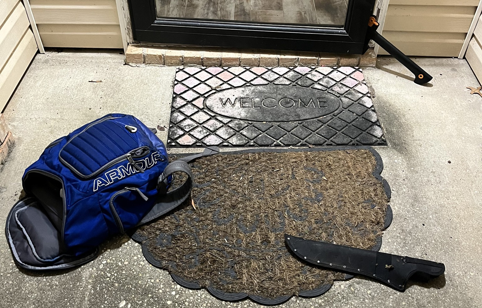 When deputies returned to the residence they saw that a hatchet was jammed in the storm door in an attempt to pry it open. Additionally, deputies collected a machete and an open pocket knife near where the burglar initially tried to hide, the ECSO said.