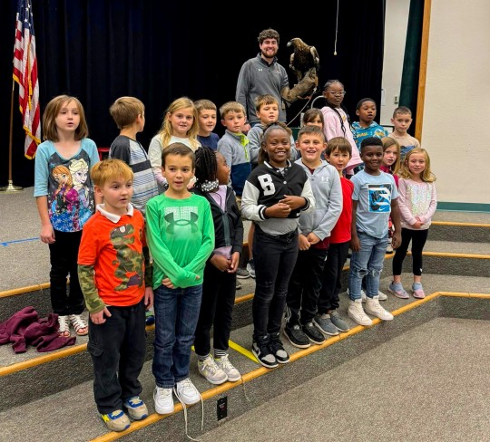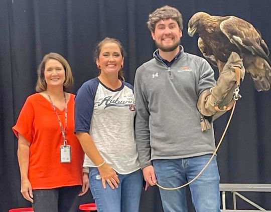 The Auburn University Raptor Center visited Bratt Elementary School Monday to present a program sponsored by the Bratt P.T.A.