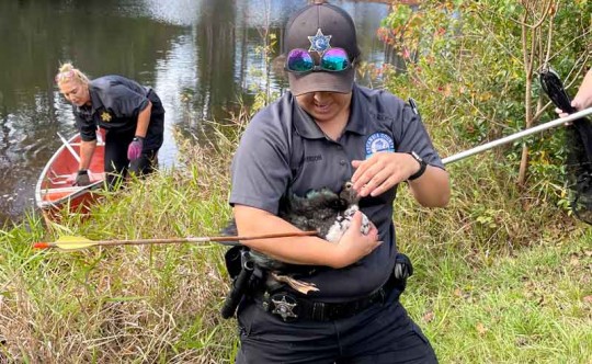For Escambia County Animal Welfare officers, “all in a day’s work” may include tracking down and rescuing an injured duck with an arrow stuck in its wing.