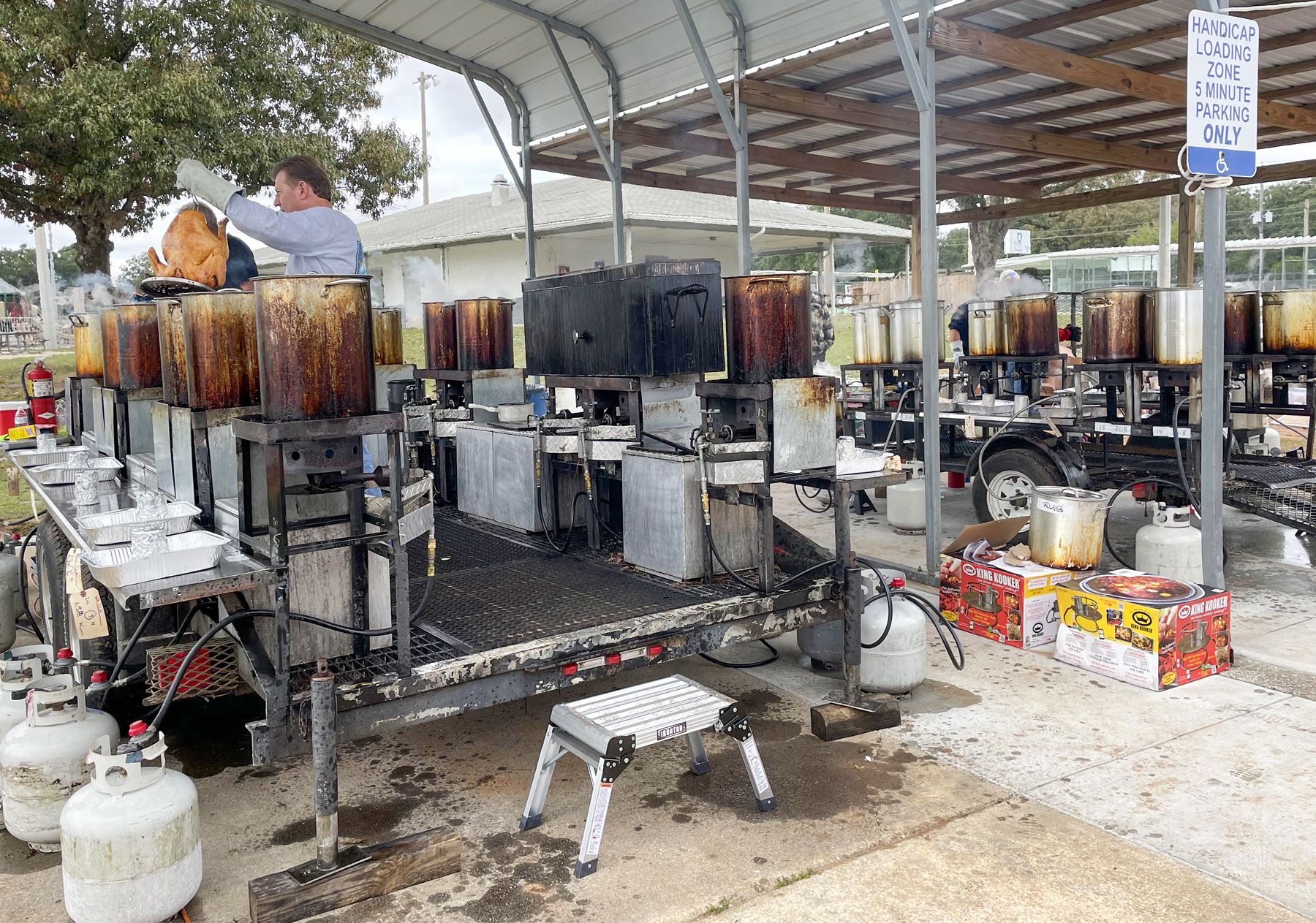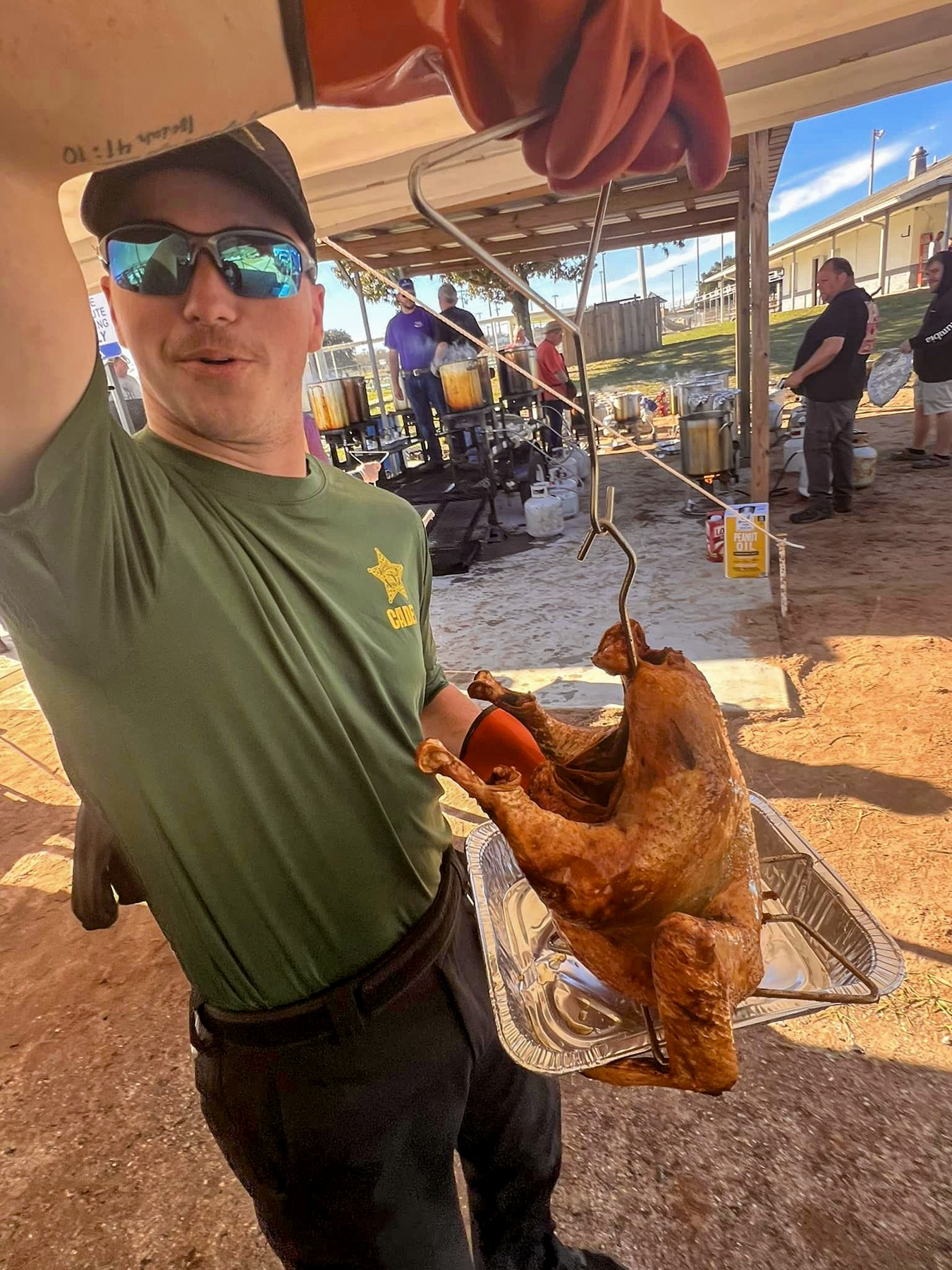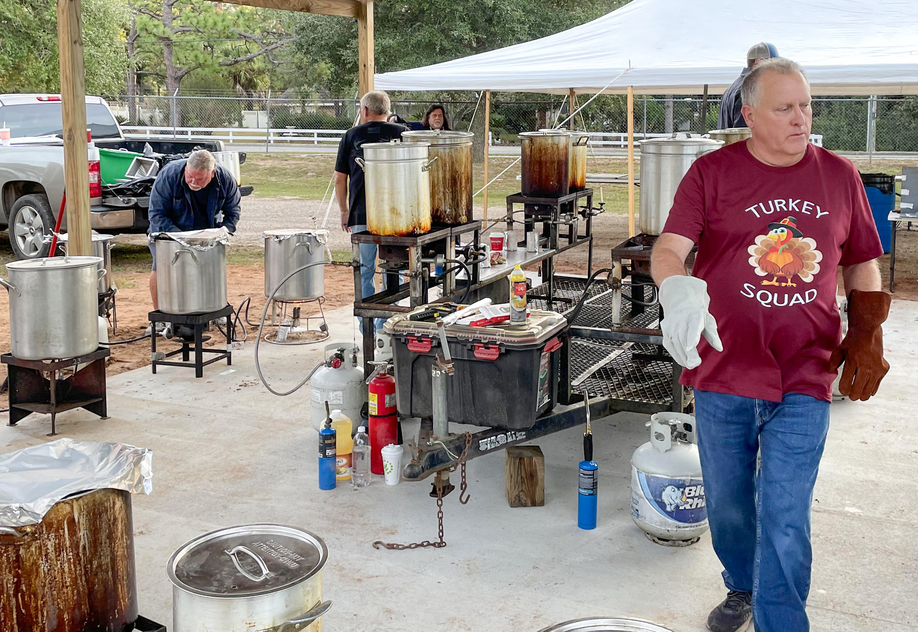 A small army of volunteers worked to deep fry the turkeys to perfection, rows of timers keeping track of the cooking time at a command center of sorts. Cadets from the Escambia County Sheriff’s Office also volunteered to make sure the turkeys were ready to enjoy on Thanksgiving.