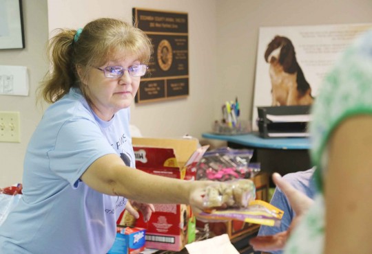 “Our main goal is to help people not have to make that choice of whether they’re going to eat or are their pets going to eat,” said Roberts, who manages the pantry with her friend Linda Signer. “Maybe their paycheck is a little tight, or maybe they just need some support or someone to talk to.”