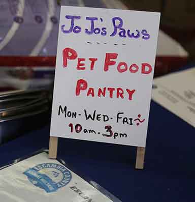 Jo Jo’s Paws recently relocated their pet pantry program to the Escambia County Animal Welfare and Adoption Center on Fairfield Drive, providing free cat and dog food to residents in need, along with a variety of essential pet items and resources.
