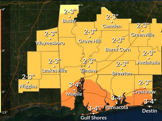 Tuesday through Thursday looks soggy with widespread 2 to 4 inches of rain possible with locally heavier amounts. The heaviest rain will likely fall along the coast with less rain further inland.