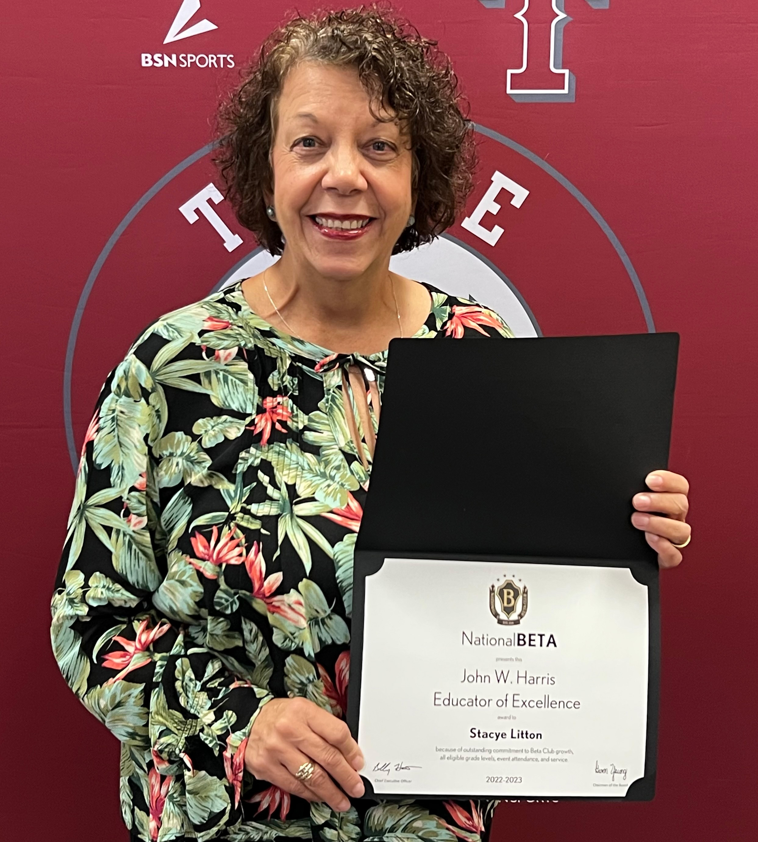 Stayce Litton of J.M. Tate High School recently achieved national recognition for her work as a National Beta sponsor after being named a 2022-2023 John W. Harris Educator of Excellence.