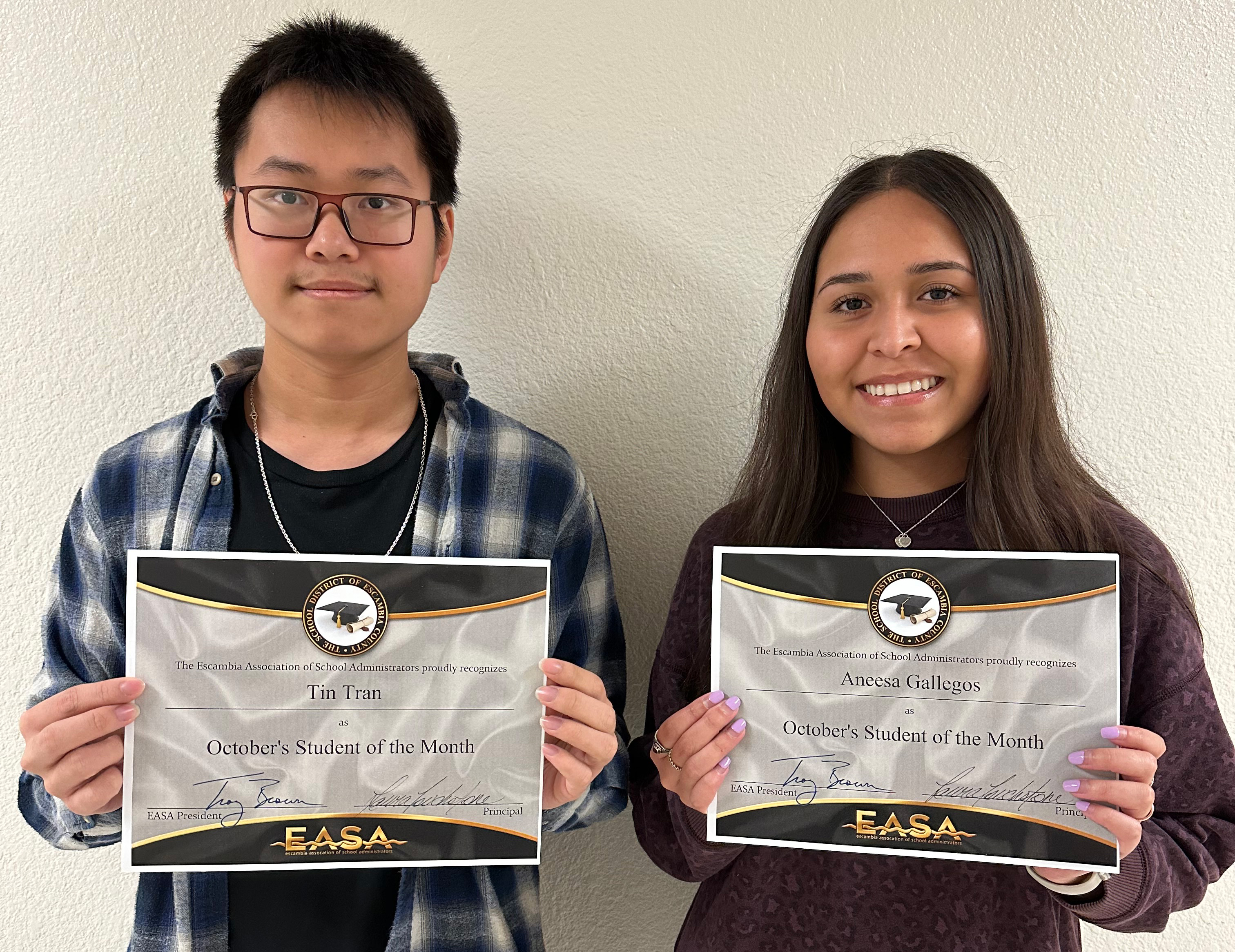 Tate High School has named their Students of the Month for October. They are Tin Tran and Aneesa Gallegos. Photo for NorthEscambia.com, click to enlarge.