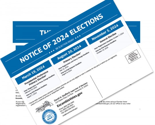 Escambia County voters should are receiving the 2024 Notice of Elections in their postal mailboxes this week.
