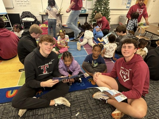 The Tate High School Aggies baseball team visited O.J. Semmes Elementary School Friday, gifting books and reading to kindergarten students.