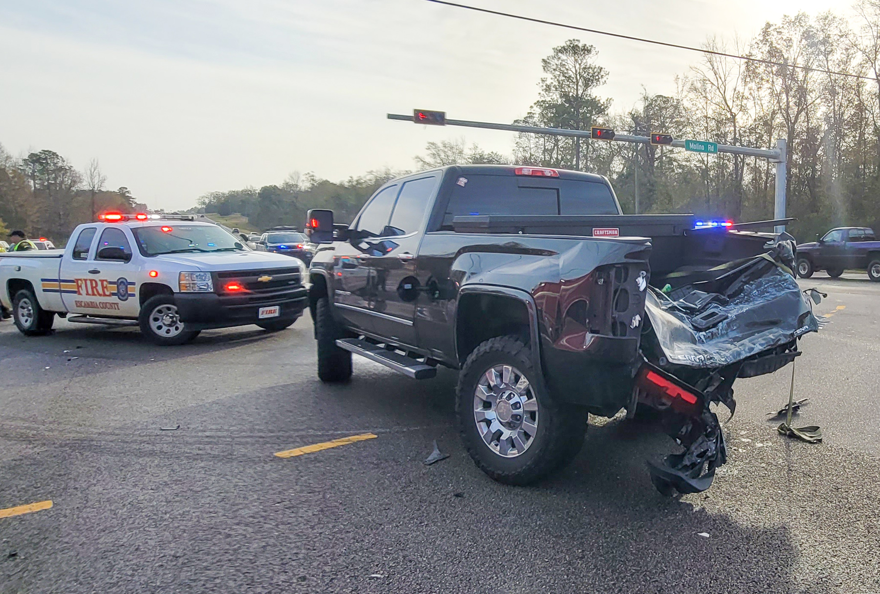 A GMC Denali pickup and a plumbing company work van were involved in the crash.