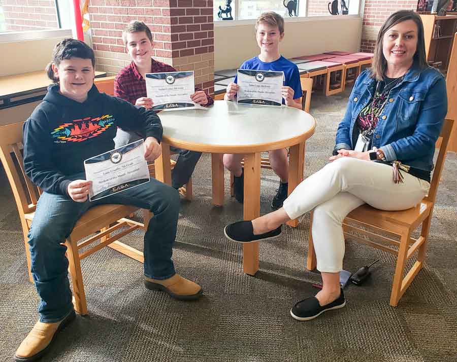 Ernest Ward Middle School named their Students of the Month for November. Pictured are: Lane Lisenby, sixth grade; Jordan Everett, eighth grade; Jadon Long, seventh grade; and Principal Tyvanna Boulanger.
