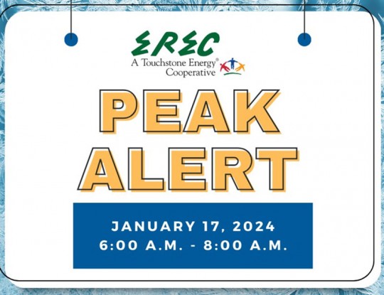 Peak alerts are not a notice of a power shortage or impending outages, EREC said.