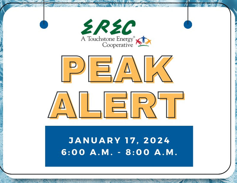 “They are simply a load-management effort used to reduce the demand for electricity and keep members’ cost of power as low as possible. Members should try to do things that conserve energy during a peak alert.”