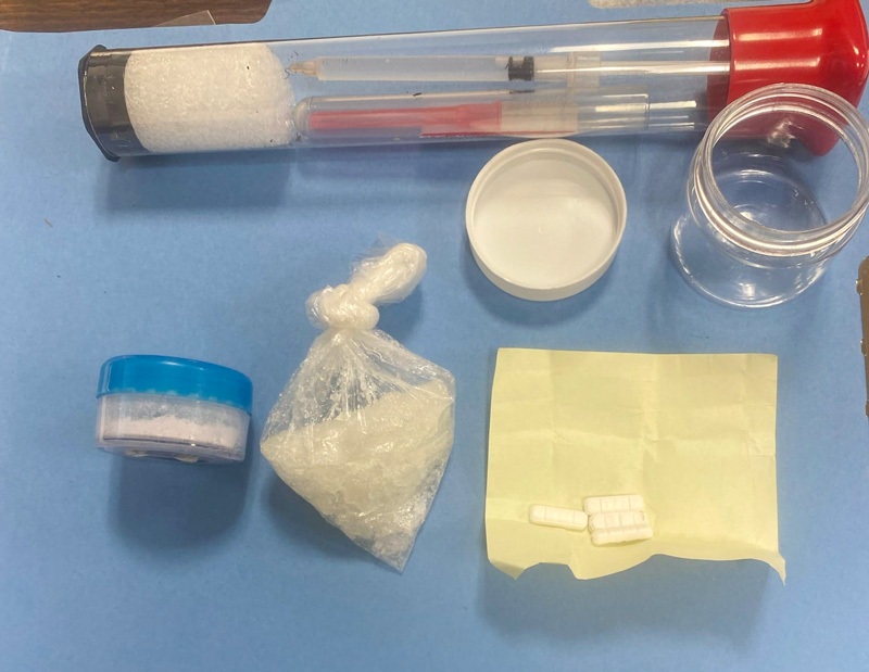 FPD said the man, identified as 28-year old Dillon K. Hollis of Panama City was under the influence of narcotics and was found in possession of a loaded syringe of fentanyl, along with three grams of pure powder fentanyl, 4 Xanax pills, and 14.3 grams of methamphetamine.