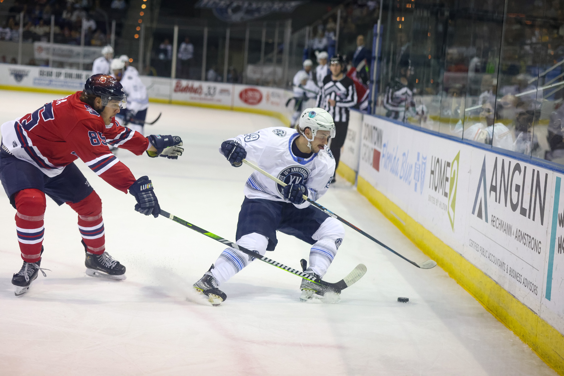 Four minutes after Milan’s goal, fellow Ice Flyers veteran Ivan Bondarenko finished a perfect pass from Taylor Egan in the slot to give the Ice Flyers a 2-1 intermission lead. Bondarenko then bowed in salute of Egan as the players embraced.