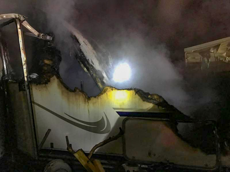 The fire was brought under control in about 10 minutes. The travel trailer was a total loss, but nearby structures were saved.