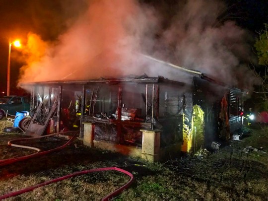 The fire in the 2600 block of North Highway 95A near Quintette Road was reported at 11:43 p.m. Ten units from Escambia County Fire Rescue responded with the first on scene reporting heavy fire on the front of the home.