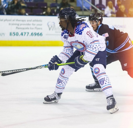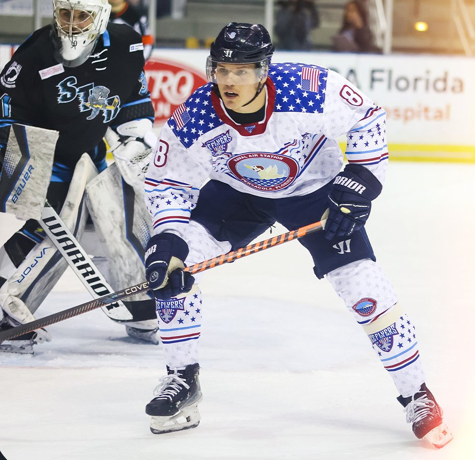 NOTABLES – The Ice Flyers wore attractive red-white-blue jerseys with stars with the Naval Air Station Pensacola logo on the front. These jerseys were auctioned after the game with proceeds benefiting Covenant Care. The jerseys were also sold at the arena merchandise stands.