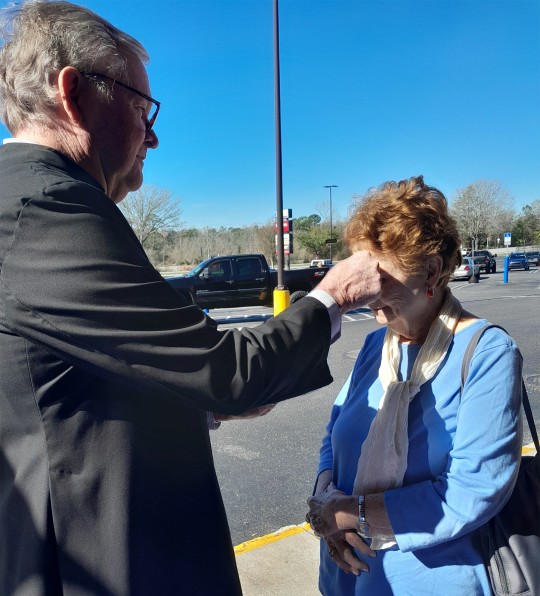 St. Monica’s Episcopal Church Rev Deacon Rachel Iversen was stationed in front of the Ace Hardware on Highway 29 for a couple of hours, offering ashes to observe Ash Wednesday, the start of Lent.