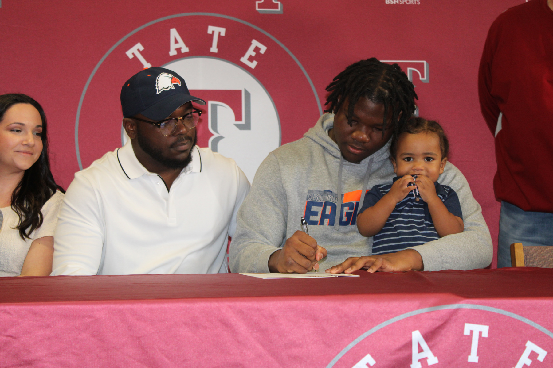 Tate High School offensive lineman Trevaris Edwards signed a full football scholarship Thursday with Carson-Newman University in Jefferson City, Tennessee.