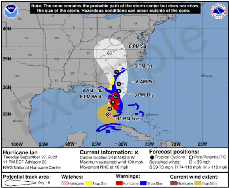 This experimental version will add a depiction of tropical storm and hurricane watches and warnings over inland areas in the continental United States. Previously, the cone graphic only showed watches and warnings in a line along the coastline of the affected area. In addition, the experimental version of the cone will use white transparent shading for the entire 5-day forecast, instead of using white stippling for the 4-5-day portion of the forecast, and the entire outline of the cone will be in white.