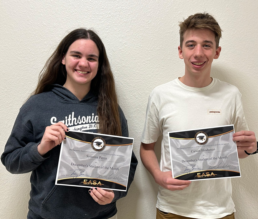 Tate High School has named their Students of the Month for December. They are Synoma Perea and Carson Hindsman. Photo for NorthEscambia.com, click to enlarge.