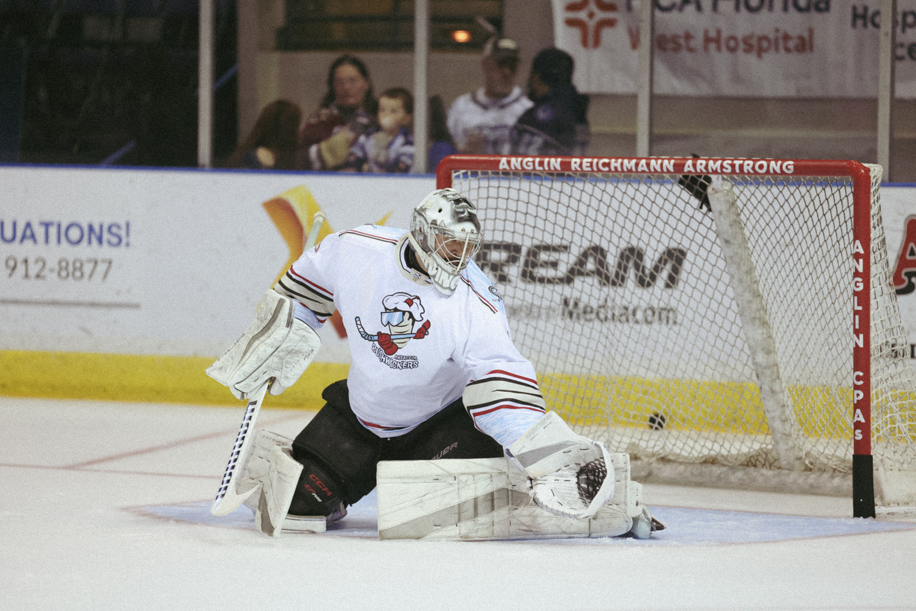 Mundinger made of one of his biggest saves of the game with 8:09 left on a point-black shot by Fayetteville right in the slot area.