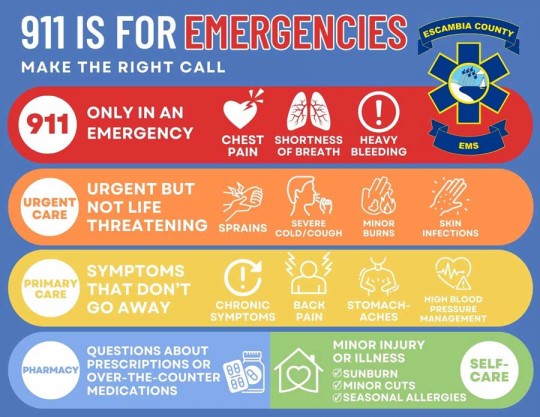 Escambia County also said consider the following guide when determining who to call for non-emergency medical situations: