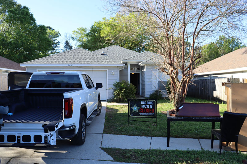 After the raid, the ECSO left behind a sign in the front yard of the home that stated, “This Drug House Is Closed”.