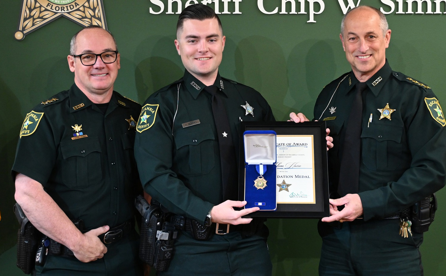 Deputy 1st Class Luke McCracken and Deputy Kevin Stack were both presented with the Life Saving Medal. In 2023, during patrol on Pensacola Beach, Deputies McCracken and Stack’s quick thinking and exceptional teamwork in response to a gunshot victim, significantly aided in the victim’s survival.