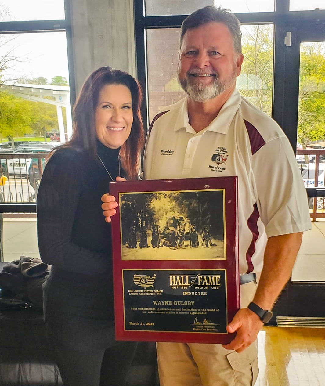 Retired Escambia County Sheriff’s Office Master Deputy Wayne Gulsby of Molino was inducted into The United States Police Canine Association Region 1 Hall of Fame during a ceremony Thursday.