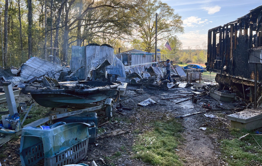 The shed was a total loss, and the mobile home will need extensive repairs.