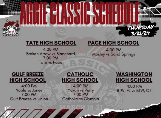 Today’s Aggie Classic Schedule Released; Tate To Face Pace For Championship