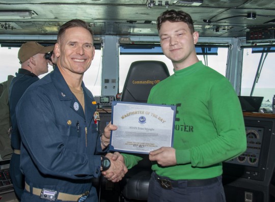 Warfighter of the Day is a command program where the ship’s captain personally recognizes an exemplary sailor for their accomplishments. Straight was selected by leadership for this honor. His motivation is always inspiring to his peers and represents the “Spirit of Freedom,” the ship’s nickname.