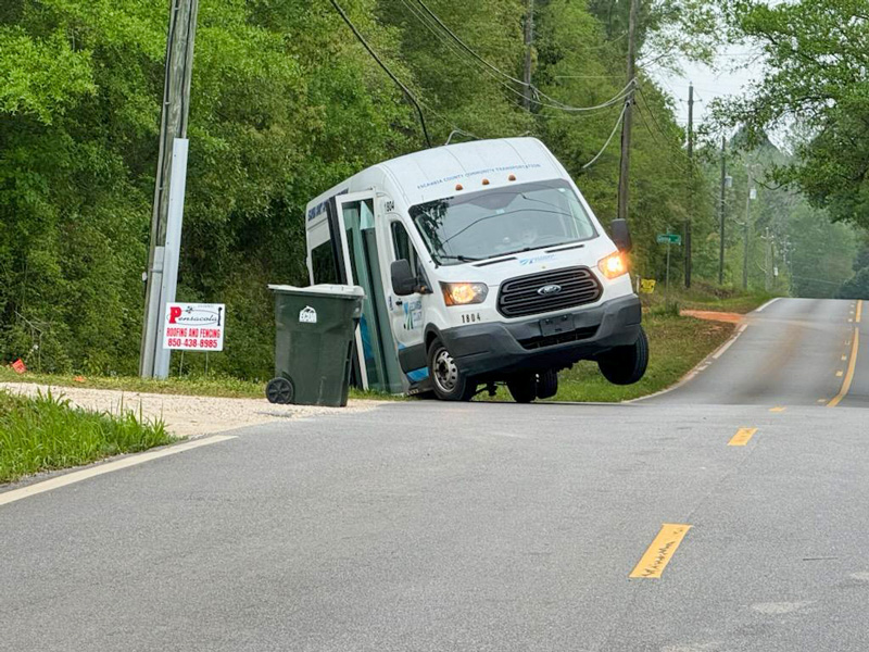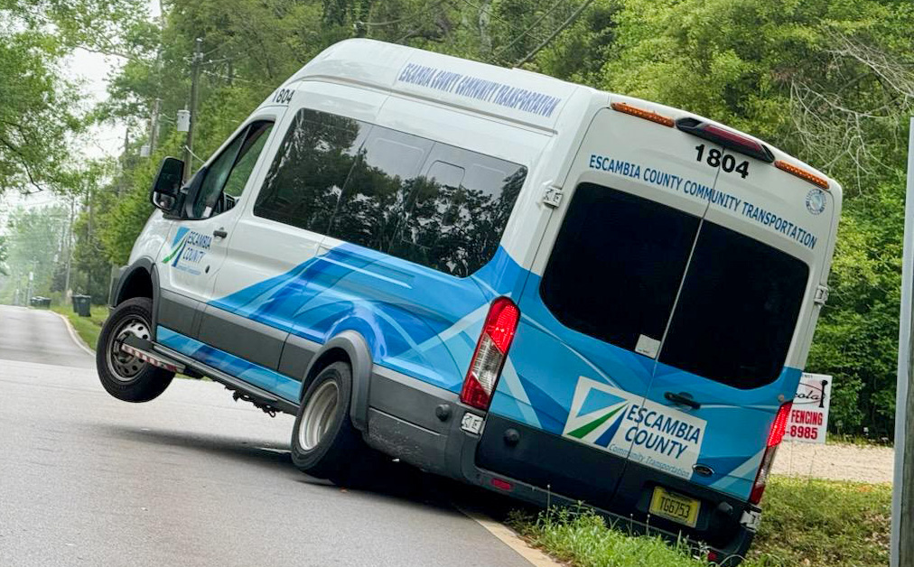 There were no injuries when an Escambia County Community Transportation vehicle went into a ditch on William Ditch Road in Cottage Hill Tuesday afternoon. An Escambia County spokesperson said, “the driver was backing out of the client’s home when one tire went into the grass and off the cement.” NorthEscambia.com photos, click to enlarge.
