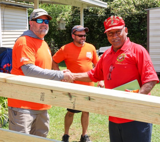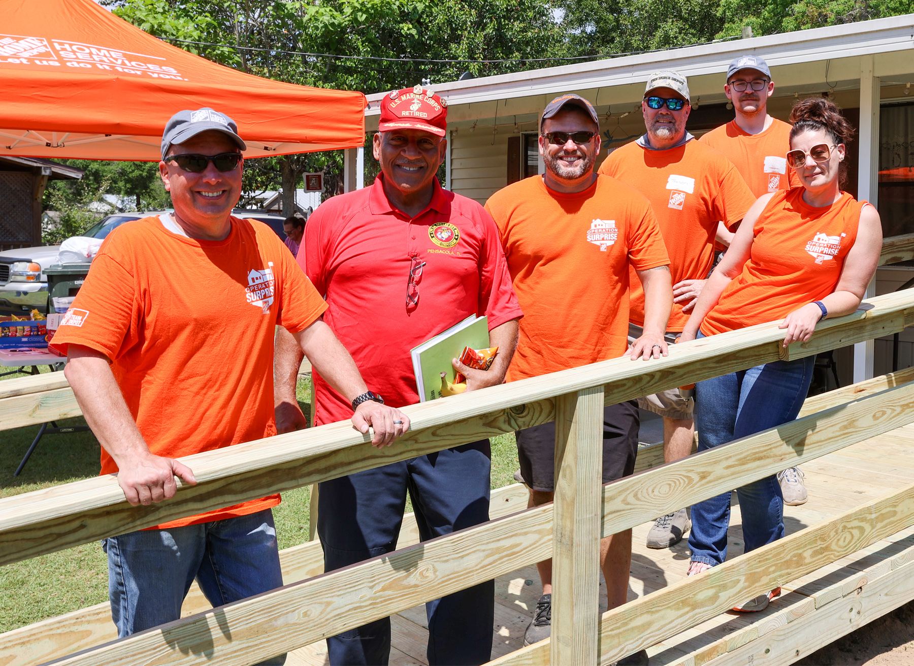 Team Depot, Home Depot’s associate volunteer force, partnered with the Pensacola Marine Corps League Cpl. J.R. Spears Detachment 066, and Heroes Among Us to construct a new wheelchair ramp for the family, remove debris and install a new flagpole Thursday morning at the home on Molino Road.
