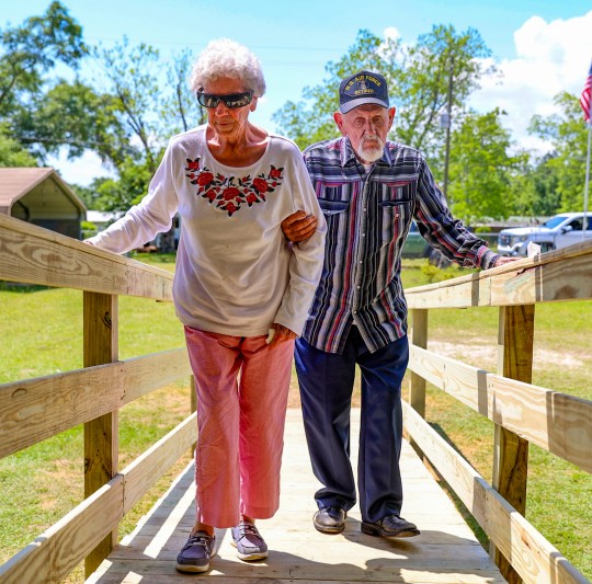 After lunch, and a little couple time watching Old Glory wave on their new flagpole, the couple headed back up the wheelchair ramp.