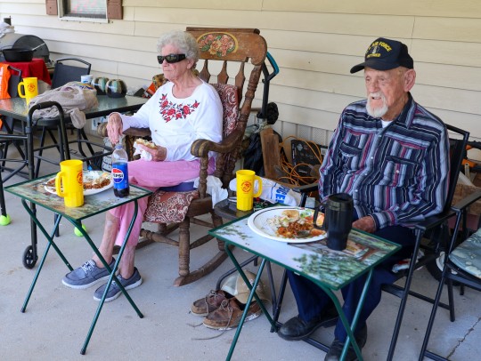 The new wheelchair ramp allowed him to go outside on his own and join the volunteers for a lunch of hot dogs, baked beans, and pasta salad — his favorite.
