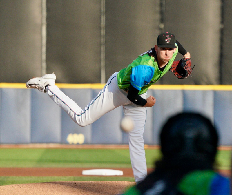 The best curve ball he threw occurred in perhaps the biggest moment of the game. The Shuckers loaded the bases when Fitterer walked one batter and plunked shortstop Freddy Zamora – one of three times Zamora was hit by a pitch from two different Blue Wahoos hurlers.