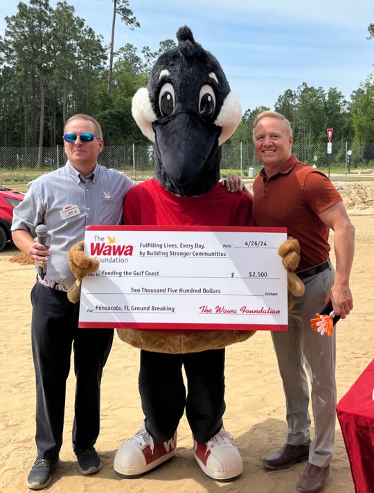 At the groundbreaking, Wawa presented a $2,500 grant to Feeding the Gulf Coast to support local programs in Escambia County to fight hunger and food insecurity.