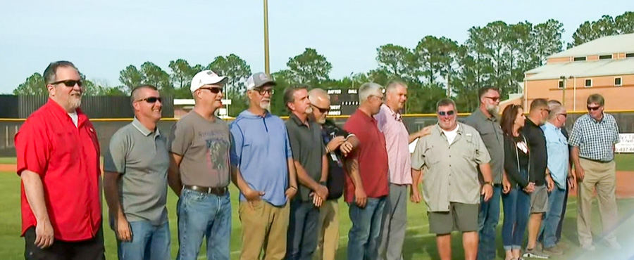 The 1984 Tate baseball team (35-1) won both the state title and the national championship and Tuesday night was their 40th reunion. The current Aggies wore commemorative jerseys with the number “84″ on the sleeve to honor the team.