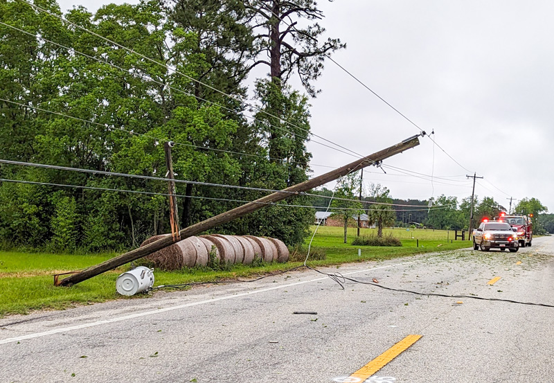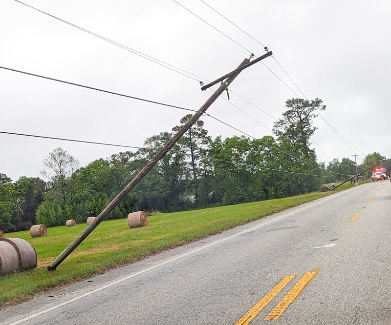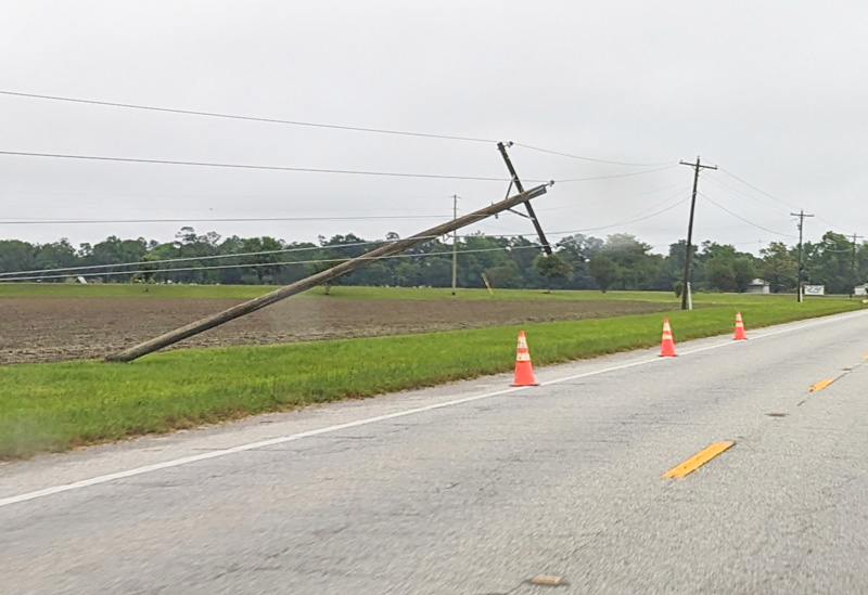 Pictured: Snapped and downed power poles on Highway 97 and North Highway 99 near Walnut Hill Friday morning. NorthEscambia.com photos, click to enlarge.