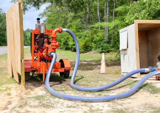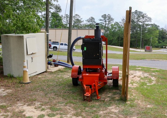Pictured: A diesel powered temporary bypass pump provided water to the Century Correctional Institution on April 29. NorthEscambia.com photos, click to enlarge.