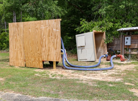 I live 1/2 mile from that pump. It has been running for several months!! The noise was so loud I could hear it in my home with the windows closed. The Town received complaints about the noise so they leaned a piece of plywood up against it to block the noise. Within a day or so the wind repeatedly blew the plywood down so they eventually did what is shown in the photos. I can’t imagine how loud it was, or how hard it was trying to steep, for the people living right there. But, they’ll just blame Heath and plead ignorance as they usually do and nothing will be done. I hopefully the Fl Dept of corrections will investigate once the law suits are filed. We’ll see…
