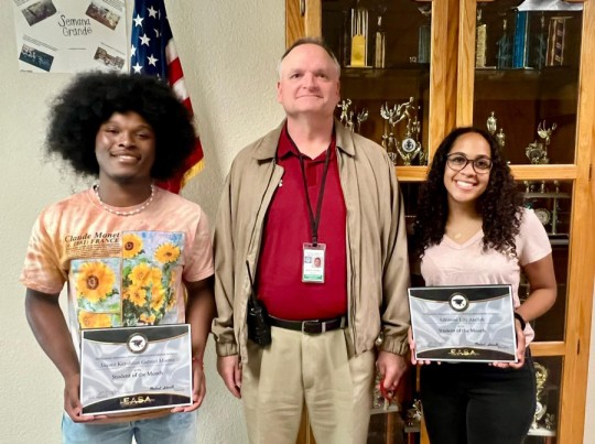 Northview High School recently named their Students of the Month for April. They are Jaquez Moorer and Adrianna Atallah, pictured with Principal Michael Sherrill. Photo for NorthEscambia.com, click to enlarge.